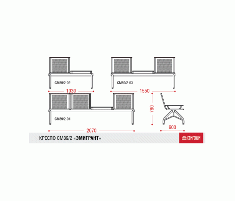 Подставка для ног "Комфорт" к многоместной секции "Вояж"