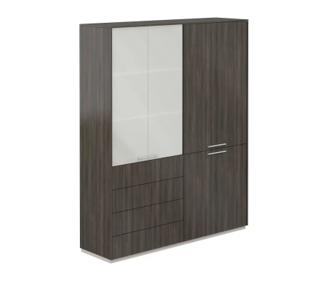 Шкаф для одежды 600 + Шкаф высокий 800 со стеклом мат., Атлас / Atlas Брэнсон трюфель