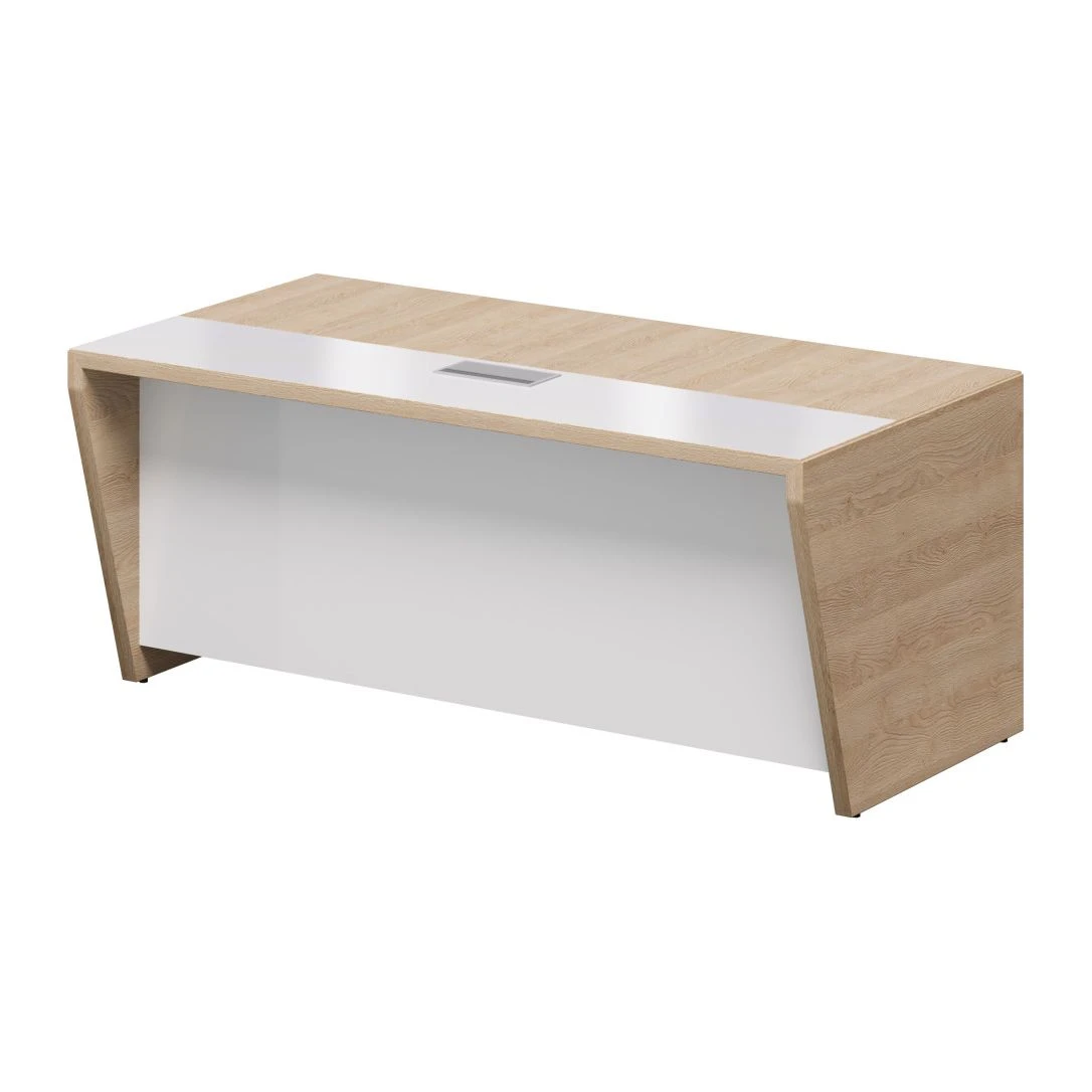 Стол рабочий, блок розеток 180х90х76 Plaza Director Дуб песочный/Белый глянец