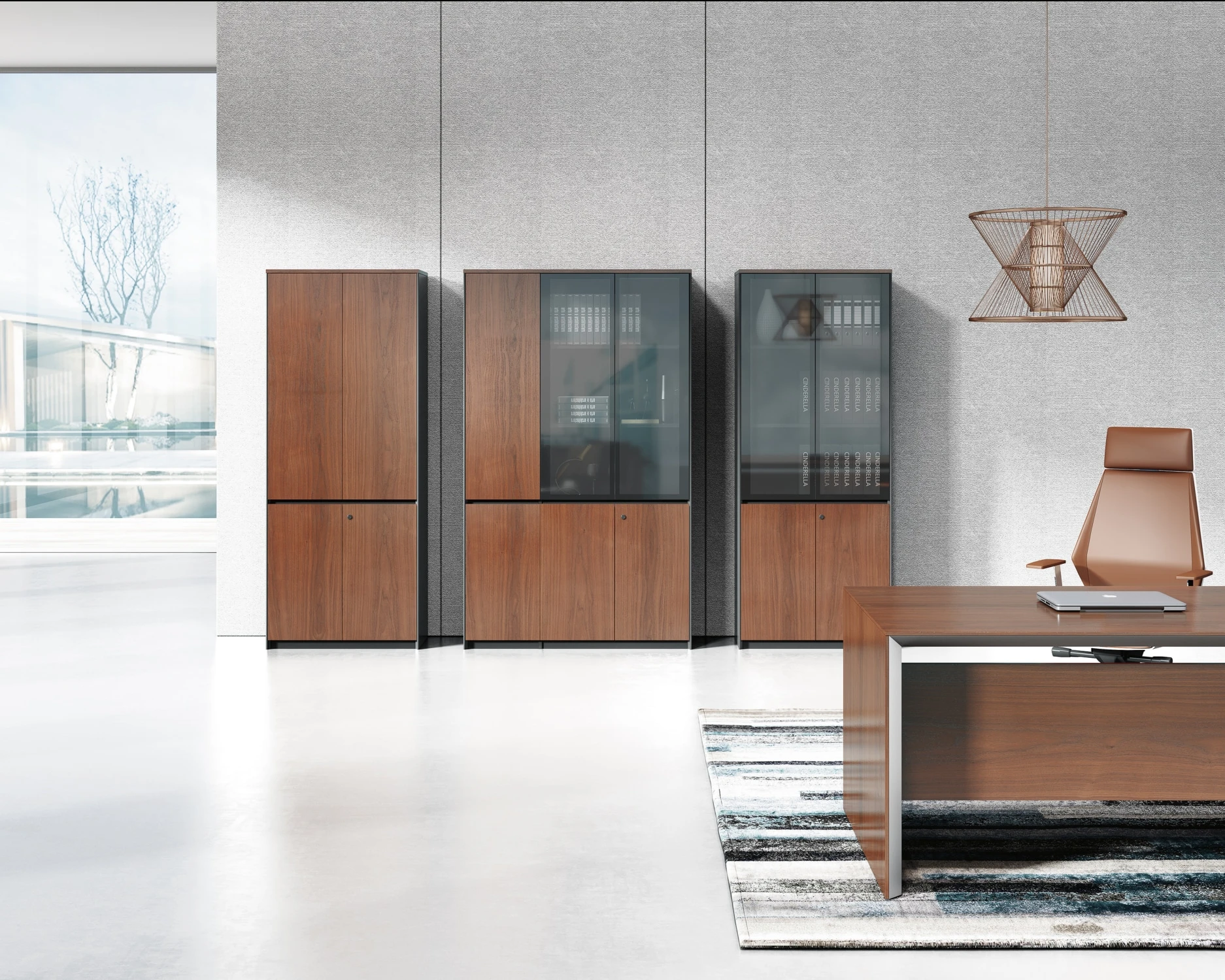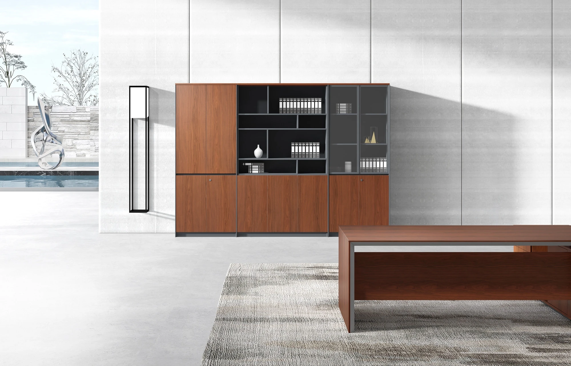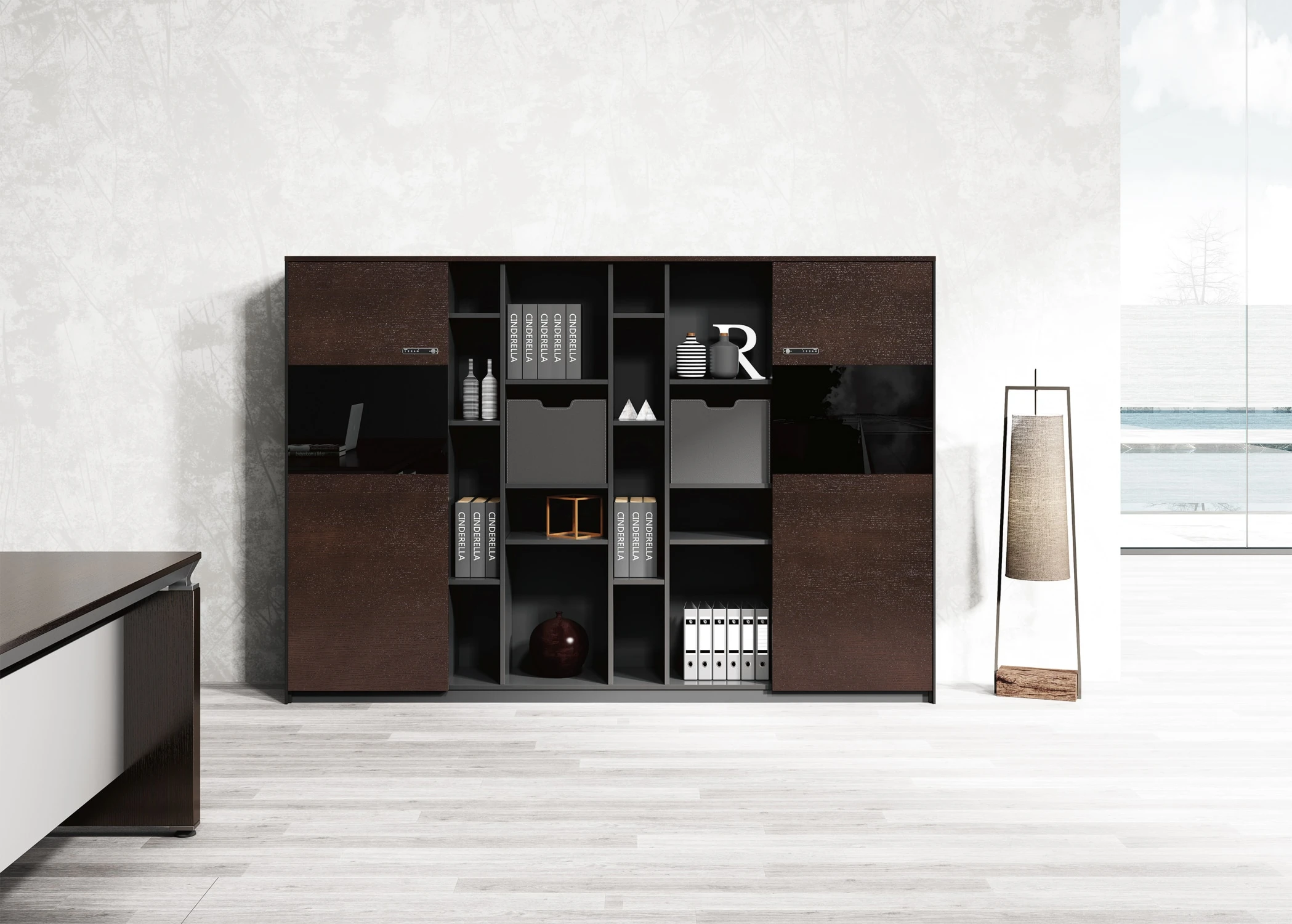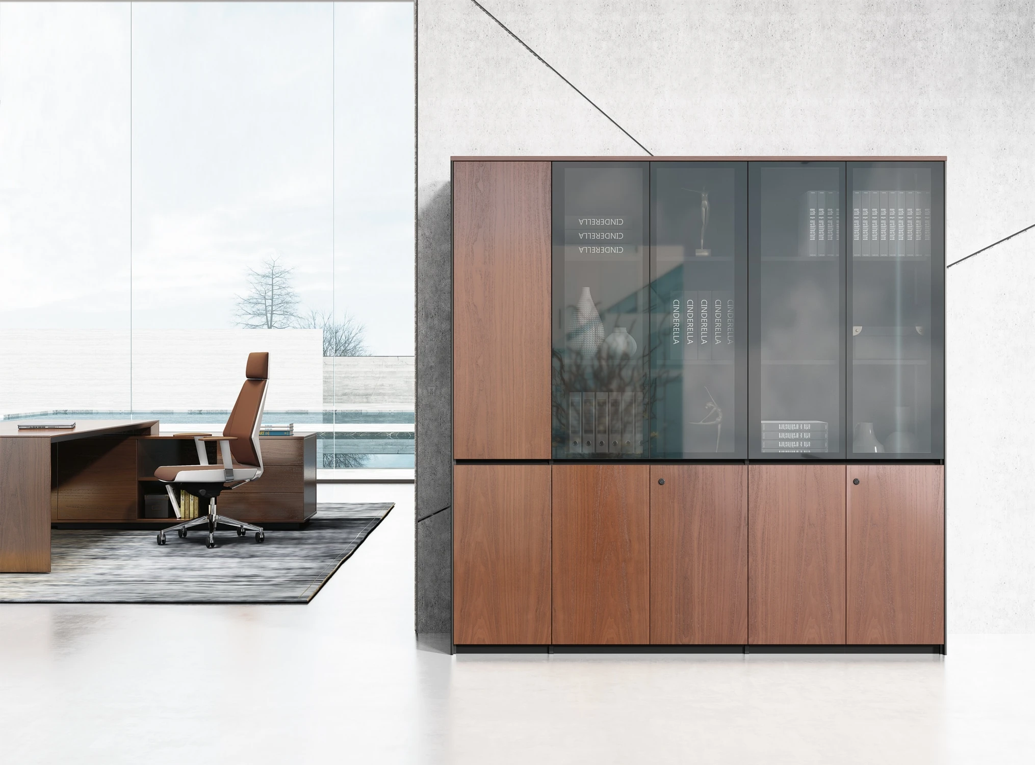 Двери: шпон; тонированное стекло в алюминиевой рамке