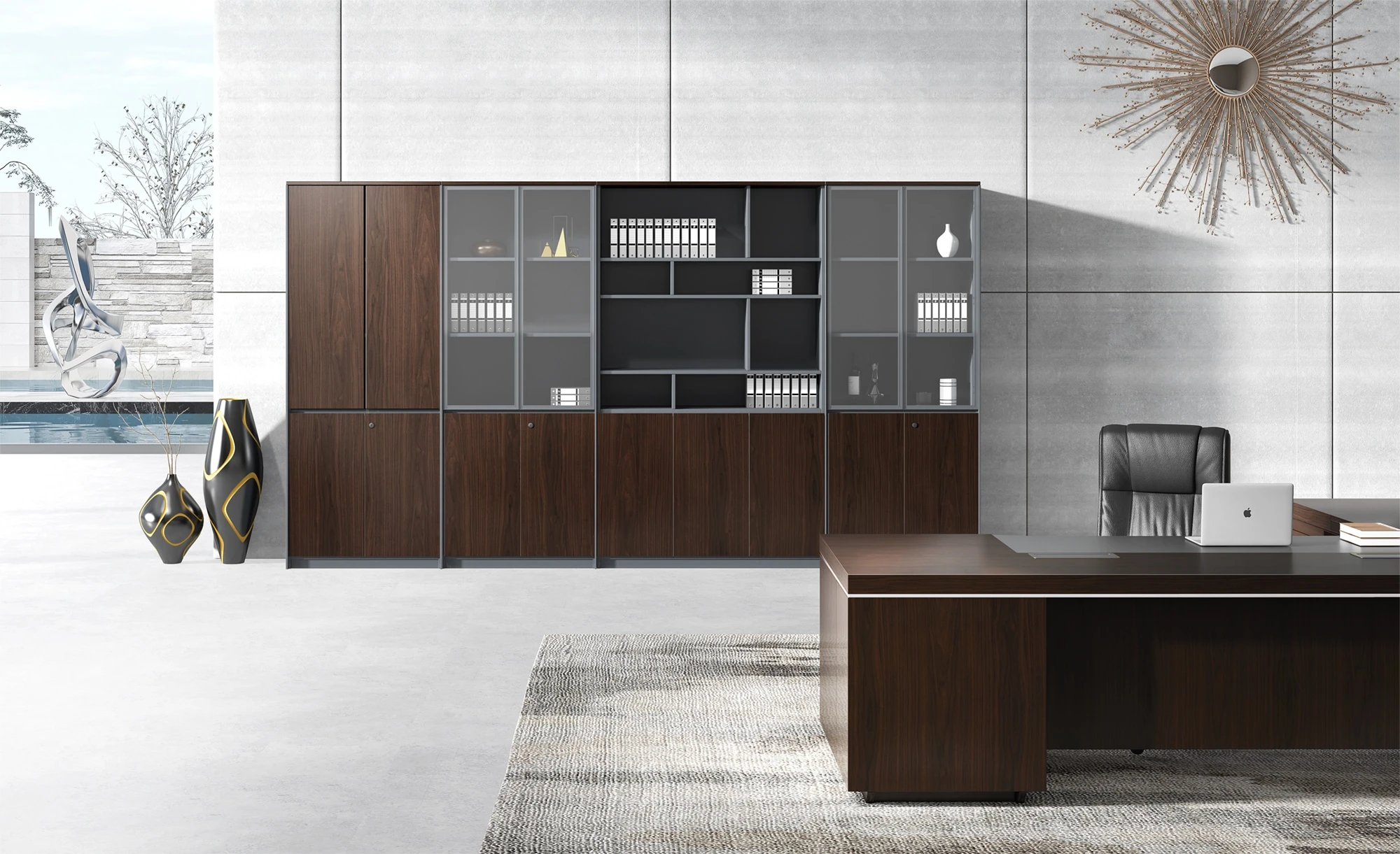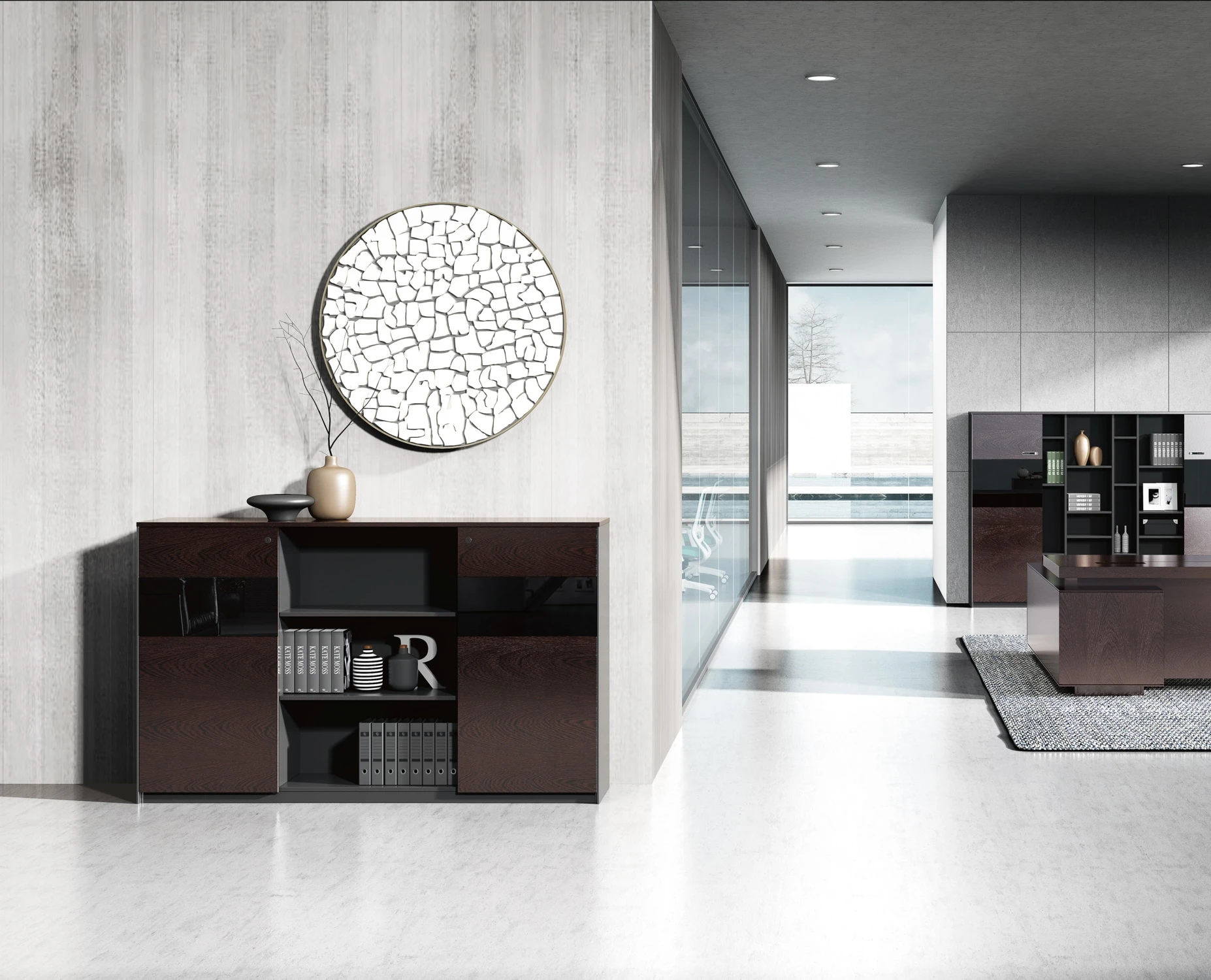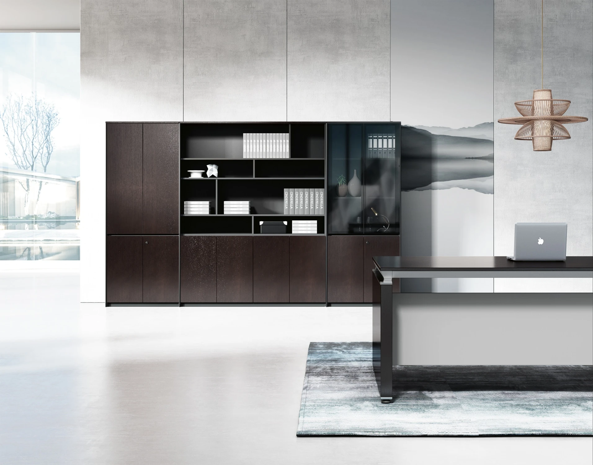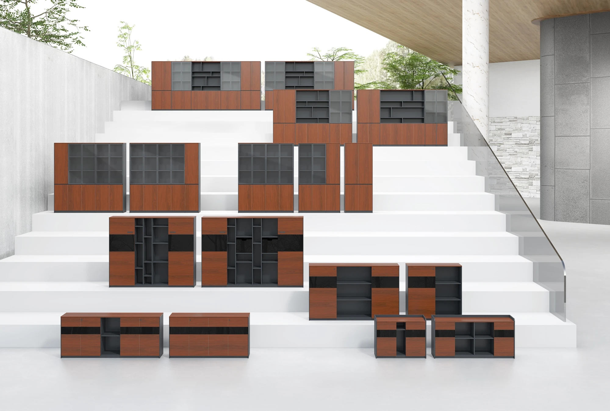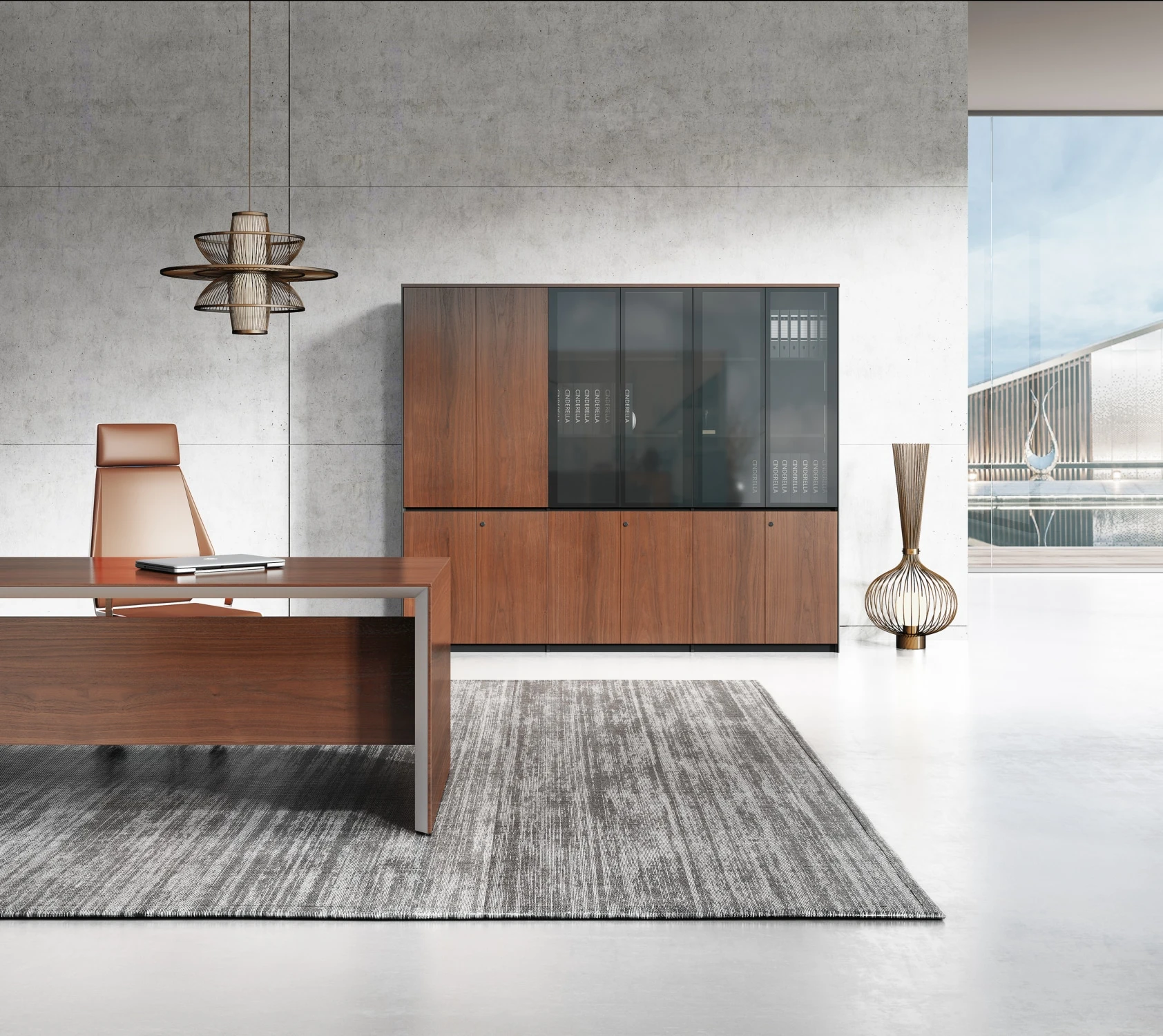 Двери: шпон; тонированное стекло в алюминиевой рамке
